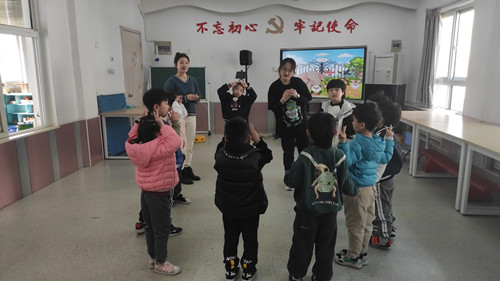 音乐教育专业员工在教师指导下精心设计,为小朋友们带去原创音乐启蒙和戏剧教学活动“我的身体会唱歌”“小老鼠上灯台”等。小朋友们利用身体的律动来配合唱歌,感知身体与音乐的配合,他们在游戏中学习,在学习中游戏。这种活泼的艺术教育模式受到幼儿和园内教师的热烈欢迎。同学们充分运用专业知识与幼儿进行互动,通过实践,他们对未来工作对象有了进一步地了解,也充分懂得了实践的重要性。他们说,仅仅学习书本知识是不够的,除了要刻苦学习专业知识外,更要学以致用,在实践中锻炼自己。