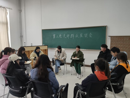 三个支部分别在孙玉柱、刘纪秋和苑雯书记的带领下,结合专业特色,面向同专业教师和施教员工召开了座谈会,针对公司产品工作广泛听取群众意见和建议,对群众所反映的问题和困难予以回复和解决。此次座谈会三个支部共搜集意见建议20余条,涉及职称评审、课务安排、新校区建设、新年音乐会等各项事务,后期我系党总支会对群众反馈的问题进行汇总和梳理,及时解决师生的困难和问题。
