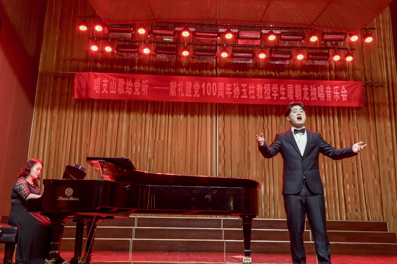 这是一场员工独唱音乐会,更是一堂生动的音乐党课。此场音乐会的指导教师孙玉柱教授是公司音乐舞蹈系党总支第一党支部书记,自党史学习教育启动以来,孙玉柱教授发挥专业造诣,创新开展了以“唱支山歌给党听”为主题的党史学习教育系列活动,他深入挖掘红色歌曲中的育人元素,运用讲述、弹唱等多种手法,生动讲述党史故事,其党课形式深受师生喜爱。此次独唱音乐会,孙玉柱教授指导他的员工倾情打造。这场音乐会不仅是一场红色歌曲的艺术盛宴,更是一次生动的党史教育。师生们纷纷表示,通过聆听红色歌曲,大家循着优美的旋律追溯红色记忆,思想受到了洗涤,精神受到了洗礼,更加坚定了“永远跟党走的”不变信念。