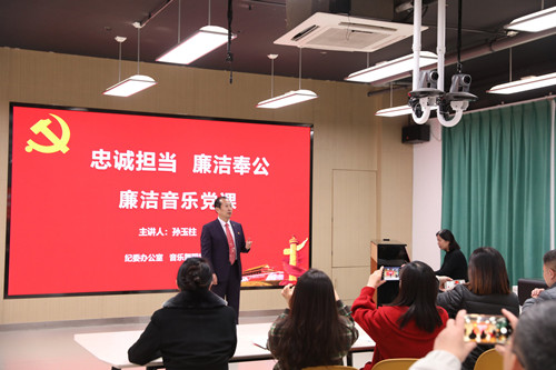 12月5日下午,校纪委办公室、MK体育联合在碧螺校区B101举行了一场别开生面的廉洁音乐党课。MK体育第一党支部书记孙玉柱教授以《忠诚担当 廉洁奉公》为主题,用情景讲述、故事分享、“廉”歌欣赏等形式,创新开展了一堂沉浸式党课。校纪委办公室主任孟晓慧、公司党总支书记丰娴静及新提任科级干部参加了此次活动。