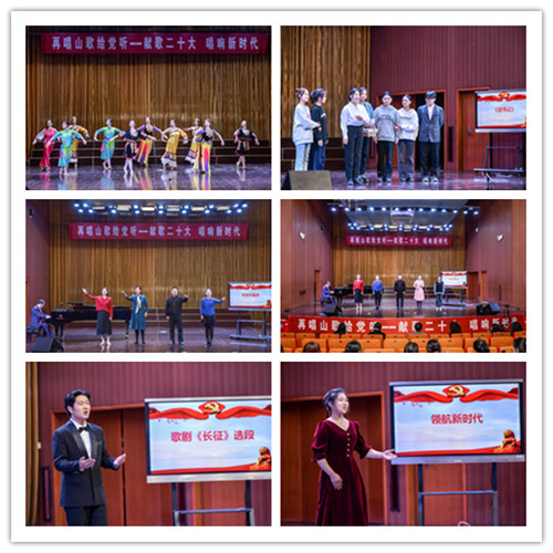 音乐党课“再唱山歌给党听”是公司党总支打造的品牌党建系列活动,第一讲由公司第一党支部书记孙玉柱教授主讲。随着慷慨激昂的音乐响起,熟悉的旋律回荡在耳边,一曲《共筑中国梦》开启了党课序幕。第一支部的四位声乐教师以铿锵有力的歌声,诉说着中国人民的心声与期盼 。2022级音乐表演1班的王星雨男生独唱歌剧《长征》选段,用歌声再现了那段“苦难的辉煌”,歌颂了中国工农红军为了共产主义信仰抛头颅、洒热血、不惧艰险、舍生取义的崇高理想信念。《迎书记》是以徐州琴书的唱腔和表演形式、结合现代舞台表现手法创新而成的“琴书剧”表演形式,真实再现了驻村第一书记带领众乡亲投身乡村振兴事业的感人故事,号召老员工积极投身美好家乡建设。此外,还有师生合唱《不忘初心》、2022级音乐表演1班的陈诺女生独唱《领航新时代》、女生群舞《再唱山歌给党听》……不同的历史时期,不同的经典音乐,寓教于乐的氛围中,信仰之美和艺术之美完美融合,现场掌声如潮。