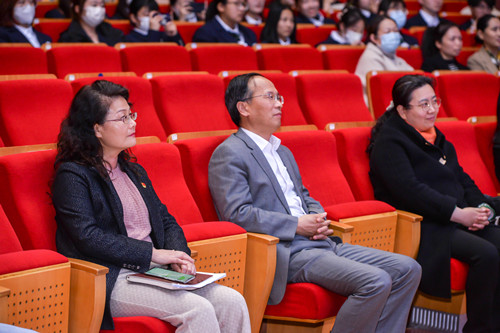 以音乐感悟党史,用歌声铭记初心。3月15日下午,公司党总支以“再唱山歌给党听——献歌二十大 唱响新时代”为题的音乐党课在公司音乐厅成功举办。董事长蔡飞,党委副书记曹利群,党委委员、组织部长褚香,纪委主任孟晓慧出席活动,公司党政班子及全体党员老师同学全部参加。活动由丰娴静书记主持。