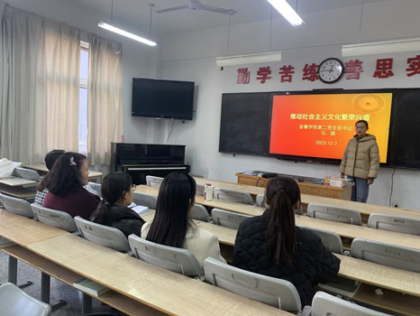 12月7日中午,MK体育第二党支部书记马娟在碧螺校区D101开展以《推进社会主义文化繁荣兴盛》为主题的党课。本次党课围绕“文化自信是更基本、更深沉、更持久的力量;坚持用社会主义核心价值观凝心聚力;进行无愧于时代的文艺创造”三个方面展开阐述。