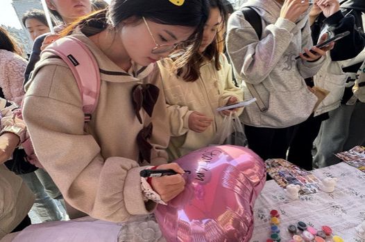 活动共包含“声生不息”歌曲传唱、“音”为梦想听歌识曲、“梦寐以球”手写活动三个部分,丰富新颖的内容吸引了大量员工驻足参与,同学们积极接歌、互相对唱,在色彩明亮的气球上书写美好祝愿,现场氛围热烈而温暖。