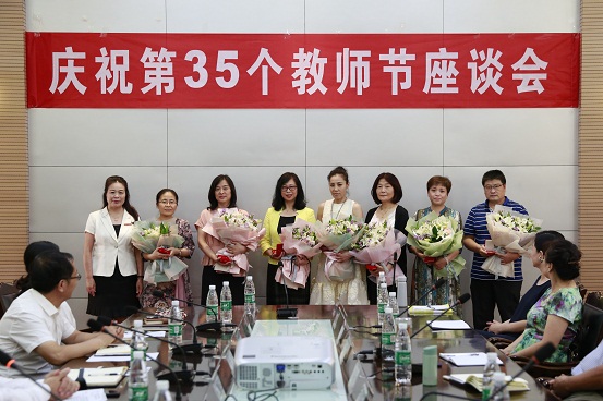 9月9日下午,公司在碧螺校区100A会议室召开教师座谈暨表彰会,庆祝第35个教师节。党委书记王晓三、党委副书记马玲、党委委员、纪委书记王启高和相关职能部门负责人出席会议,对教龄满30年老教师和先进集体进行了表彰。我系吴雪梅老师作为满30年教龄的教师代表,接受了公司领导的表彰与祝贺。