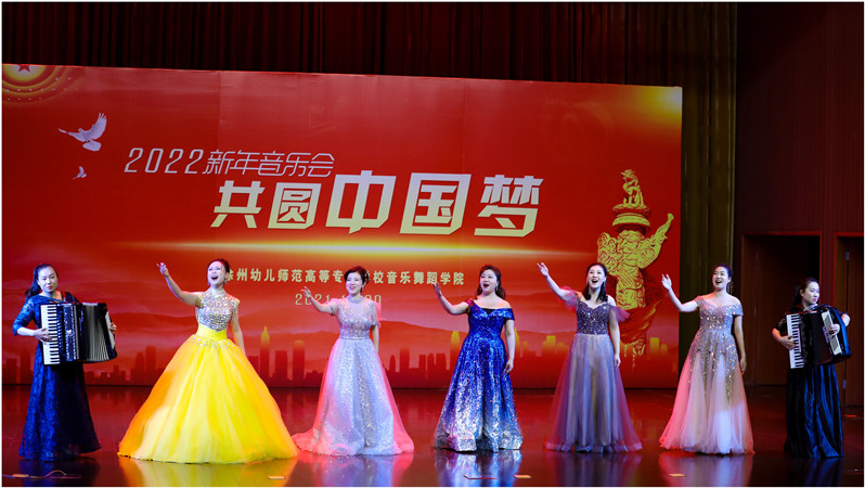 新年音乐会在愉悦喜庆的舞蹈《春节序曲》中正式拉开序幕,女生独唱《敕勒歌》唱出了敕勒人热爱家乡热爱生活的豪情;手风琴独奏《查尔达什舞曲》节奏鲜明,速度迅急而情绪热烈;特邀嘉宾旅美青年钢琴家丁聪的钢琴独奏李斯特《但丁奏鸣曲》以其高超的技艺,倾情的演绎带大家走入了艺术的梦境;女生独唱《永恒的爱恋》表达了对祖国的无限热爱;女生小合唱《青春舞曲》亲切、活波,充满了青春的活力;女生独唱《梅花引》融入了昆曲艺术元素,表达了少女对爱情的渴望和坚贞;男女生二重唱《饮酒歌》以轻快的舞曲节奏,表达了人们对美好生活的向往;男声独唱《最亮的火焰》唱响了共和国优秀共产党员和时代奋斗者的赞歌;花腔女高音《军营飞来一只百灵》以其纯熟的演唱、欢快的节奏,赞颂了军营文艺工作者对事业的执着,对祖国的热爱。舞蹈教研室老师们的民族舞连跳《再唱山歌给党听》舞跳出了对党和祖国的恩情;女生独唱《鸟儿在风中歌唱》情感起伏,音域宽广,具有极强的艺术感染力。歌伴舞《共圆中国梦》将音乐会推向了高潮,曲目大气雄浑,磅礴优美,老师们用最真挚的歌声表达了对生活和民族梦想的美好追寻。