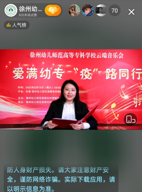 此次云端音乐会举行于徐州疫情防控取得阶段性胜利之时,这暨是对疫情防控之战阶段性告捷的庆贺,又是对师生团结一心、共抗疫情的激励与鼓舞。在常态化疫情防控的道路上,这场艺术的饕餮盛宴,为大家增添了勇气、鼓舞了斗志、积蓄了力量,在这爱意满满幼专校园,让我们携手并肩,“疫”路同行!