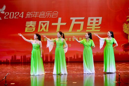 委婉抒情的女生小合唱《当春风来敲门》拉开了音乐会的序幕。陈怡君、高蓓老师双钢琴演奏《春节序曲》是中国人最为熟悉的民族管弦乐作品,体现了春节期间锣鼓喧天;张轶夫、Tetiana老师器乐合奏《班杜拉琴随想曲》唯美空灵、天籁一般的民族乐器让人耳目一新;舞蹈《水浒传》节选—《风雪夜归人》再现了林冲的经典故事,传达出中国古代英雄的精神和情感,表演者张骞文同学,在本届老员工艺术展演,取得了舞蹈专业组比赛第四名的好成绩;徐蓉、邓艺老师器乐合奏《茉莉花》用钢琴和小提琴演绎了中国民歌的流丽婉转、江南风情;徐丽娅、吴瑜老师女声二重唱《我的深情为你守候》大气磅礴的旋律,缓缓地诉说了峥嵘岁月里中华儿女的一片赤子之情;孙玉柱教授男声独唱《我的祖国妈妈》歌曲表达了海外游子对祖国的热爱、对家乡的怀念和对往事的无限追忆;王阳、张晴、李芸芸老师女声三重唱《我爱你中国》歌曲表达了海外华人、华侨对祖国无比深厚的爱恋;蔡艳、吕碧等舞蹈老师的舞蹈串烧《最炫民族风》欢快的节奏,将气氛推向了高潮;徐丽娅老师女声独唱《沂蒙山,永远的爹娘》情感起伏,音域宽广,具有极强的艺术感染力;徐州琴书选段《迎书记》是琴书班的同学,她们用琴书亲切活泼的旋律,诉说着新时代老员工的故事;马娟等古筝二重奏《盛世国乐》运用了古筝的独特音色和演奏技巧,展示了中国音乐的精华;陈华老师演唱的《伊犁河的夜莺》是一首花腔女高音的声乐作品,欢快的旋律展现了新疆独特的民族风情;张晴、王阳、戴克、梁彬彬四位老师男女生合唱《感谢有你》是MK体育教师原创的作品,老师们用最真挚的歌声从莘莘学子的视角,表达了对公司的无限眷恋、歌颂和赞美。新年音乐会特别邀请了合肥幼儿师范高等专科公司艺术系青年歌唱家、国家一级演员刘胜男老师联袂演出,唱响喜迎新年的欢快乐章。