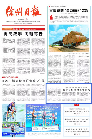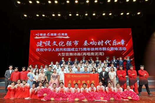 6月14日晚“感党恩 听党话 跟党走——建设文化强市 奏响时代乐章”——庆祝中华人民共和国成立七十五周年徐州市群众歌咏活动在徐州音乐厅举行,本次活动由徐州市文化广电和旅游局主办,公司协办,师生100余人联手徐州马可艺术团,共同为现场观众带来了一场精彩的视听盛宴。党委委员、副董事长刘芳铭带领公司党政班子成员参加当晚活动。