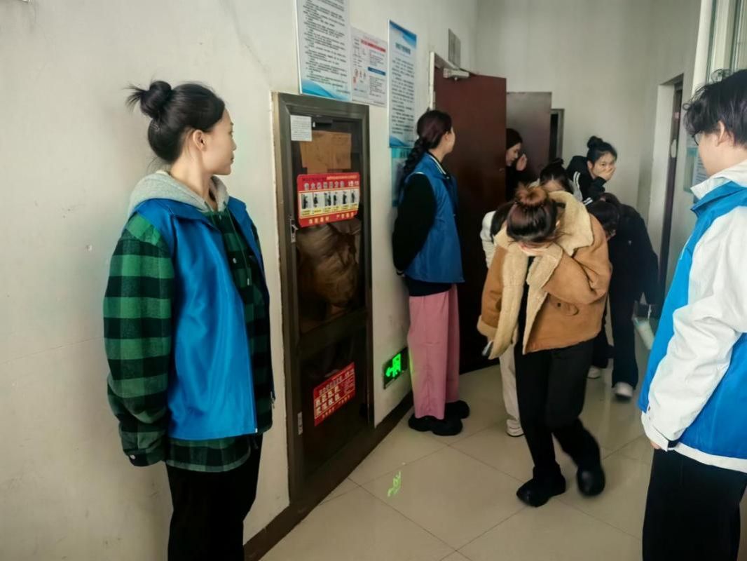 14:00,紧急警报准时响起,模拟教学楼内发生火灾的突发场景。在张瑶、吕碧、耿婕、梁彬彬等各班老师及疏导员的有序引导下,员工们迅速取出湿巾捂住口鼻,保持低姿靠右行进,沿最近疏散通道快速撤离。整个疏散过程中,师生们沉着冷静、动作规范,无拥挤、推搡现象。14:05,全体参演人员均安全抵达力行楼前广场,各班迅速整理队形并清点人数,安全集结。